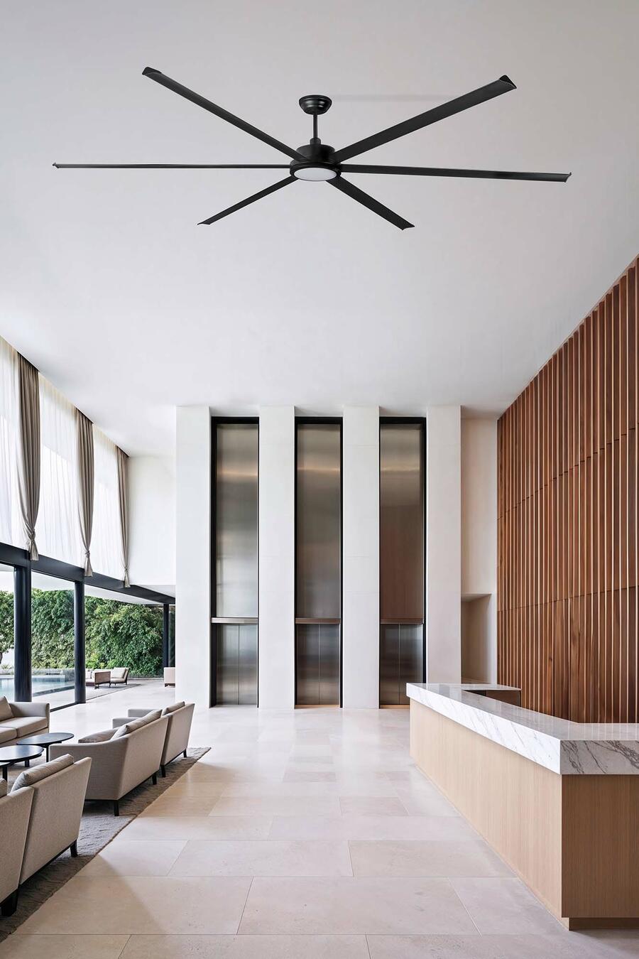 Il ROTTERDAM 25 XXL LED è il ventilatore da soffitto industriale ideale per grandi spazi come magazzini, palestre e centri commerciali con superfici superiori a 39 m².